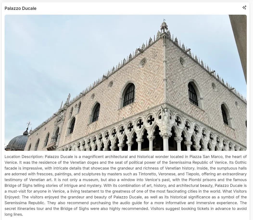 With TripsAround, you can customize each itinerary by adding images from a variety of sources: upload from your device, choose from our internal gallery, use external URLs, or let AI generate images and descriptions tailored to you. This allows you to make each trip visually appealing and informative.